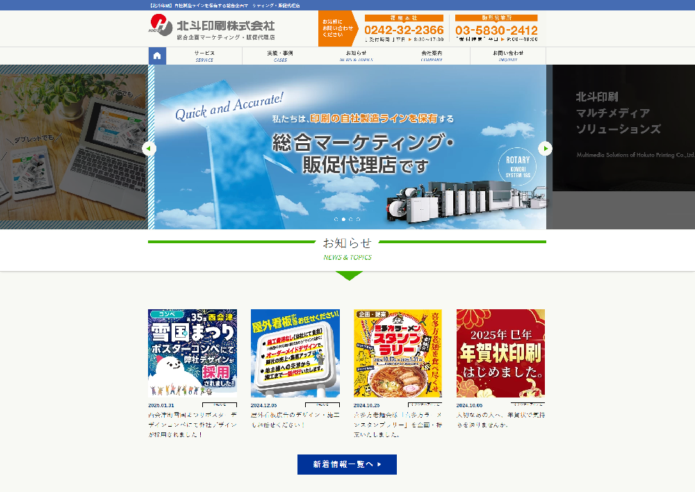東北地方を中心に、幅広い印刷物のデザインから納品までをワンストップで対応する北斗印刷様のコーポレートサイトをリニューアルいたしました。