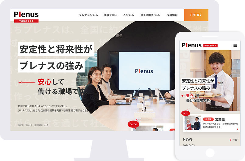 プレナス様は、採用サイトを「新卒・中途」それぞれ分けて制作しました。そのため、社員インタビューにおいても、新卒サイトでは新卒入社の社員、中途サイトでは中途入社の社員の方々をピックアップしていただきました。