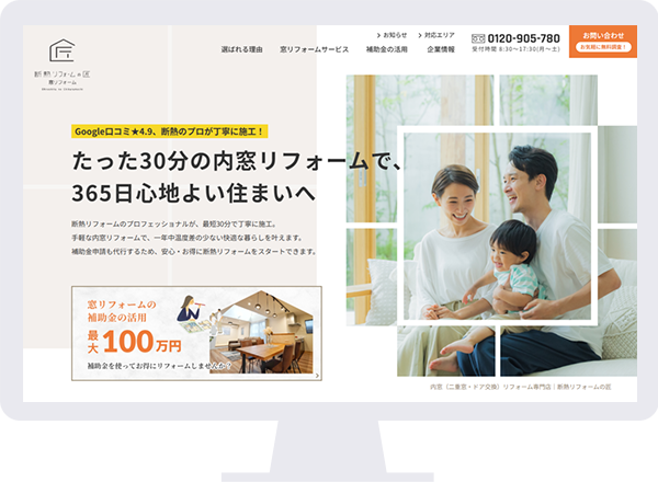 10年以上にわたり最適な内窓リフォームを提案し、Google口コミでは100件以上の投稿と平均★4.9の高評価を獲得する、断熱リフォームの匠様のサービスサイトを新規作成しました。