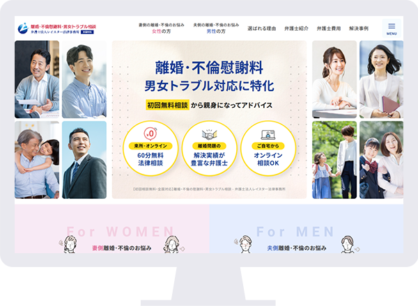 離婚・不倫慰謝料・男女トラブルに精通した弁護士が、最適な交渉戦略で最善の解決へと導く、レイスター法律事務所様のサービスサイトをリニューアルいたしました。 |