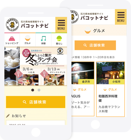 ホームページ制作無料「コスパ定額制30プラン」のレスポンシブサイト制作実績です。入念なヒアリングを元に、UIデザイン、サイト全体設計、Webデザイン、Webシステム開発を行っています。このホームページでは、トップページと各カテゴリページに店舗検索を配置し、カテゴリー毎に店舗はランダム表示されるので、偏ることなく各店舗のアピールができるようにして制作いたしました。 |